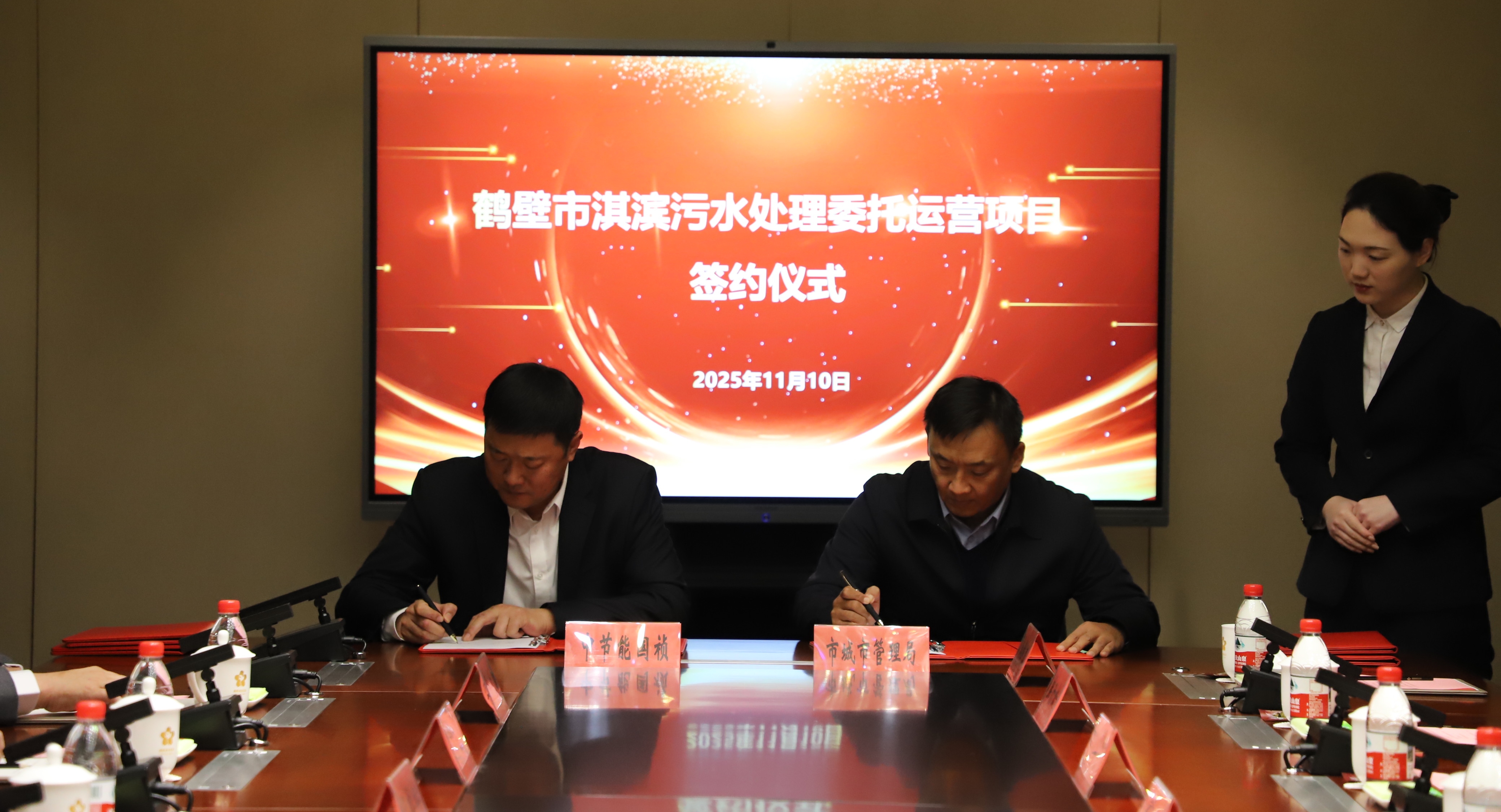 11月10日,淇滨污水处理有限责任公司委托运营项目(以下简称淇滨项目)签约仪式在鹤壁举行。鹤壁市政府副秘书长、办公室主任裴文顺,中节能国祯副总经理叶东等双方代表出席签约仪式。